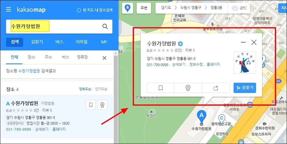 추가로 가정마다 준비해야 하는 서류가 달라질 수 있다고 말씀 드렸는데요. 이에 대해서도 물어보면 친절하게 알려줍니다. 가정법원 전화번호는 카카오맵 사이트를 통해 쉽게 알 수 있습니다.