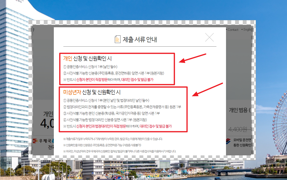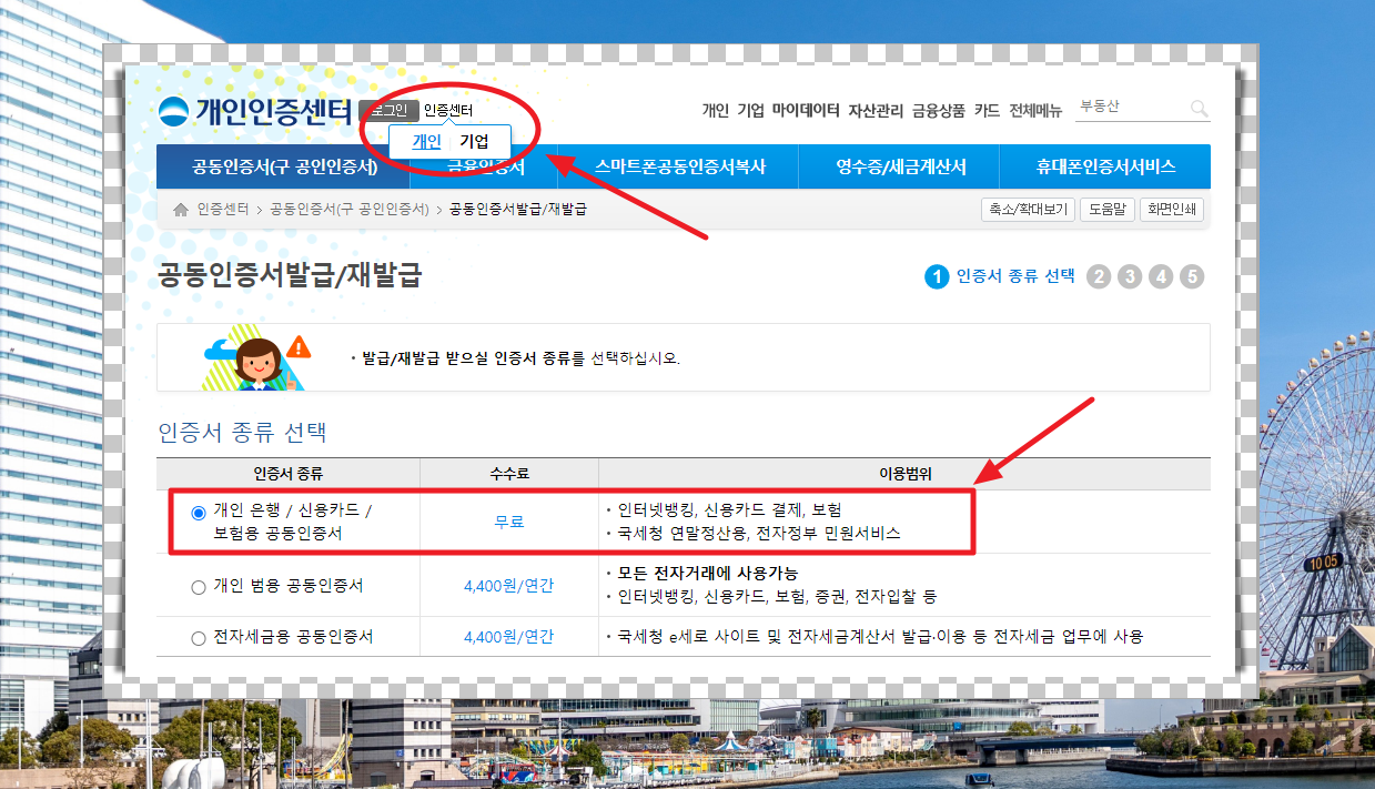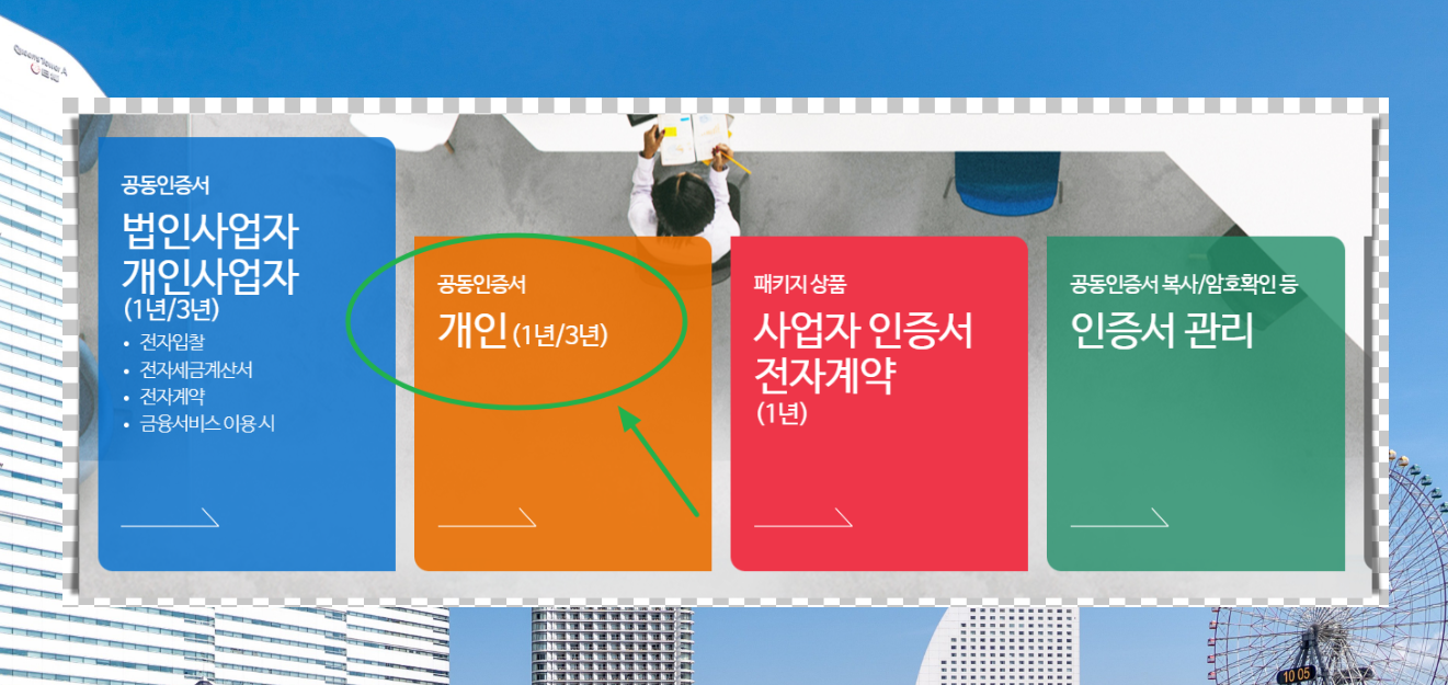 개인용 공동인증서에 관련된 페이지가 열렸습니다.