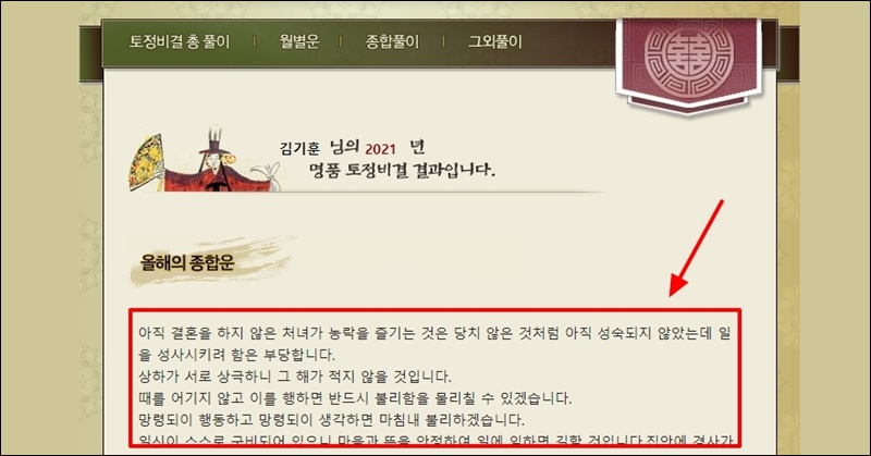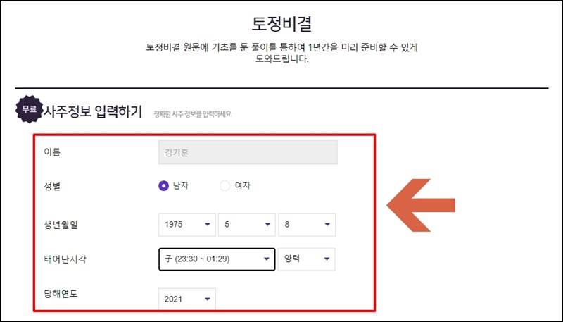알차게 토정비결 무료 2021 보기 서비스 이용하기.