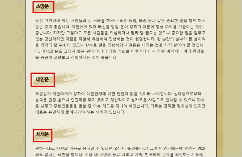 2021년 들어오는 소망운, 대인운, 처세운에 대한 이야기도 토정비결에서 다루고 있는데요. 점집에서 토정비결을 볼 때처럼 좋은 이야기도 있고, 반대로 좋지 않은 내용도 포함되어 있어요.