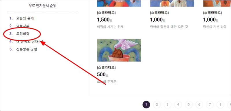 화면을 쭉 내리면 "더보기" 버튼이 나오는데, 클릭해 보세요. 그럼 좌측에 무료 인기운세 순위가 나타나요. 여기에서 3위를 차지하고 있는 토정비결을 마우스로 클릭해 주세요. 참고로 오늘의 운세, 명품사주, 내 운명의 상대, 신통방통 궁합 보기도 꽤 높은 품질의 역술 서비스에요. 나중에 이용해 보세요.
