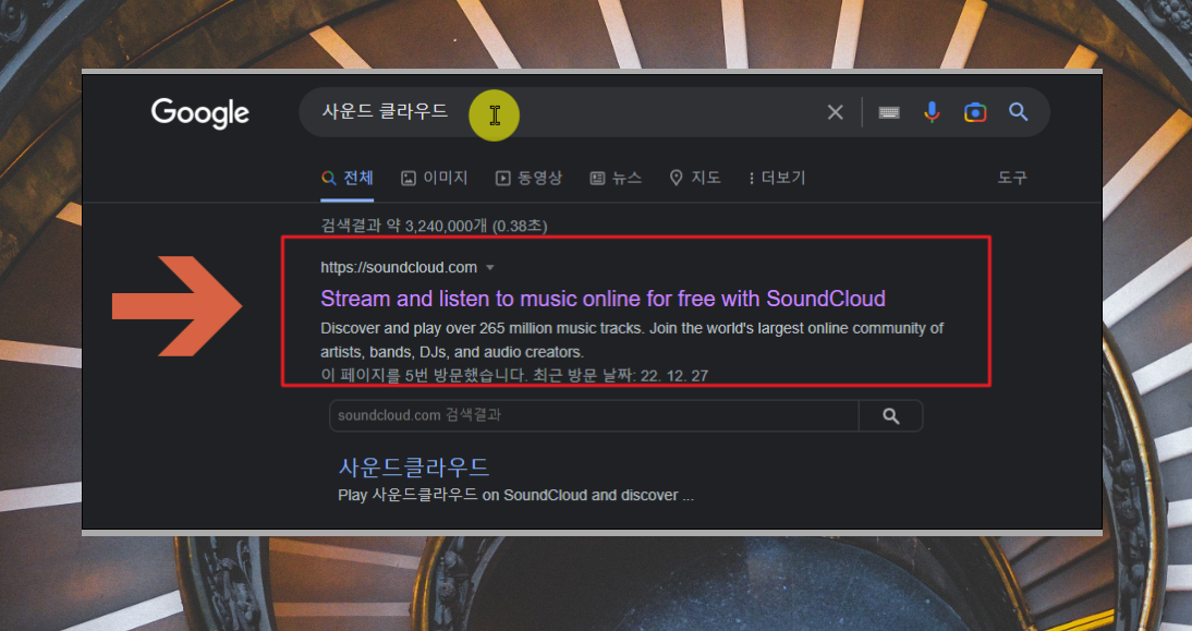 그럼 본격적으로 베스트 복음송 감상하는 방법을 알려 드리겠습니다. 일단 사운드클라우드라는 사이트에 접속해야 되는데요. 이곳은 해외 사이트 이지만, 한국어로 된 노래를 많이 찾아 볼 수 있어요. 사이트 간단소개에서 볼 수 있듯이 온라인상에서 무료로 음악을들을 수 있도록 하는 서비스를 제공하고 있습니다.