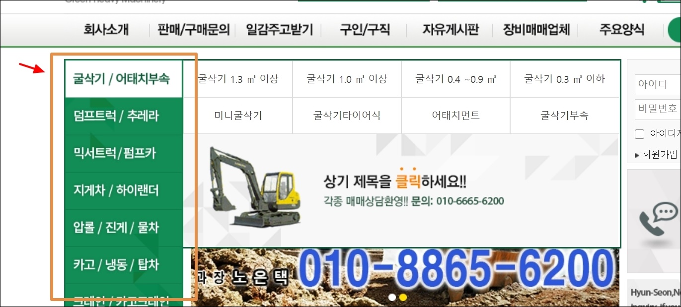 첫 번째 매매상사는 바로 그린중기 입니다. 이곳은 25년 노하우를 자랑하는 곳으로 굴삭기, 덤프트럭, 믹서트럭, 지게차, 물차, 카고 등 다양하게 다루고 있죠.