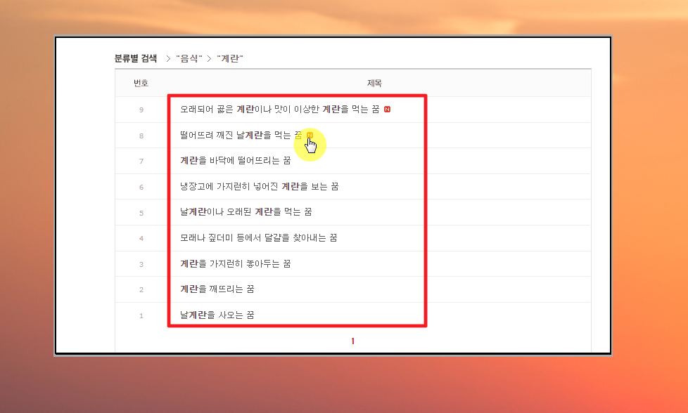 계란을 선택했는데요. 바닥에 떨어뜨리거나 계란을 바닥에 떨어뜨리는 꿈 여러 가지가 보이네요.