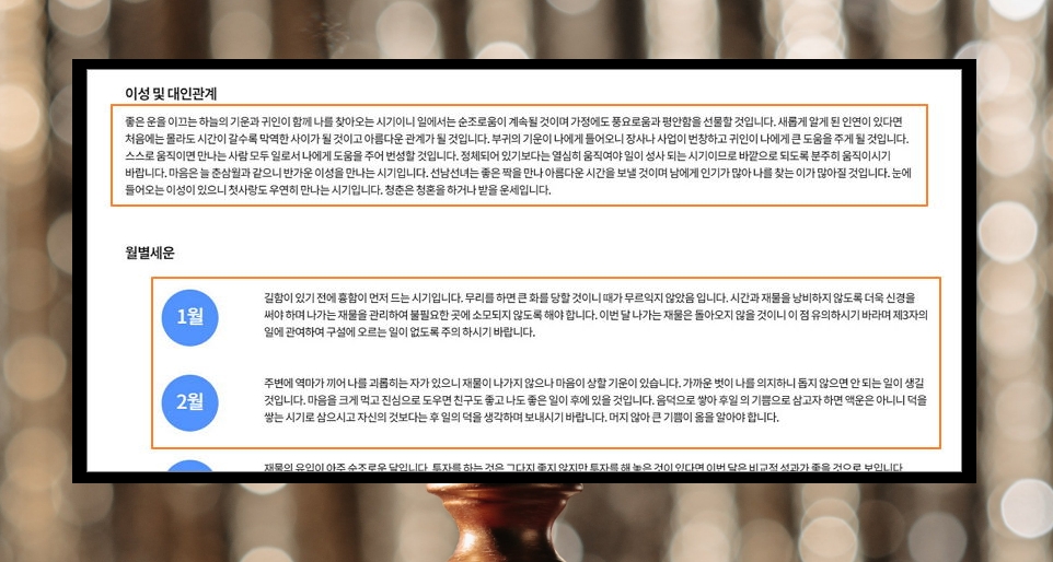 9. 사주팔자를 통해 월마다 어떤 운이 들어오는지도 간단히 볼 수 있어요.