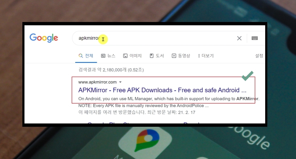 1. 기기에 구글 플레이 스토어가 설치되어 있지 않은 상태이기 때문에 일반적으로 많이 이용하는 방법으로 앱 설치를 할 수 없어요. 이러한 경우에는 스마트폰 프로그램의 Install 파일이라고 할 수 있는 APK 파일을 이용하면 되는데요. 해당 파일은 apkmirror 사이트에서 쉽게 구할 수 있어요.