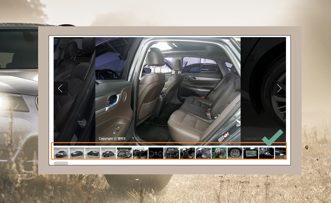 9. 시세보다 저렴하다고 판단되는 중고자동차 매물을 하나 클릭해 보았어요. 그럼 새롭게 페이지가 열리며 많은 사진을 확인할 수 있게 되는데요. 앞면, 뒷면, 옆면은 물론이고, 내부 상태가 어떠한지 꼼꼼히 살펴볼 수 있어요.