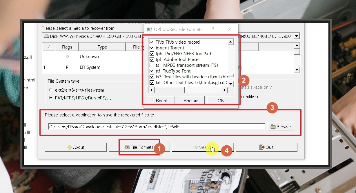 5. 두 번째로 해야 할 일은 데이터 포맷을 설정하는 일입니다. 복구 프로그램을 사용해보면 알겠지만, 꽤 많은 데이터가 되살아납니다. 그렇기 때문에 필요한 컴퓨터 파일을 찾기가 어려울 수 있습니다.