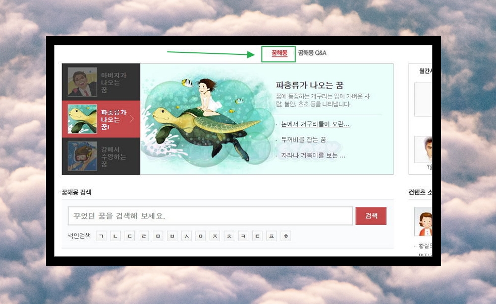 c. 새롭게 열린 페이지에서는 해몽에 관련된 많은 내용을 볼 수 있는데요. 기존 다음 무료 꿈 풀이 보기 서비스를 대신하기에 안성맞춤이에요. 검색을 하거나 카테고리 선택을 통해 어젯밤에 꾼 것이나 내용을 찾아보세요.
