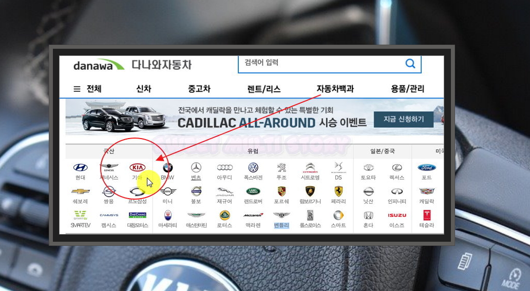 사이트에 접속하게 되면 여러 브랜드가 나타나요. 국산차 카테고리에서는 현대, 제네시스, 기아, 쉐보레 등이 나타나고, 유럽 카테고리에서는 벤츠, 아우디, 폭스바겐, 포르쉐 등이 있어요. 일본과 중국 브랜드로는 도요타, 렉서스, 혼자, 이스즈 등이 있죠. 미국 자동차 브랜드에 대한 정보도 알아볼 수도 있습니다.