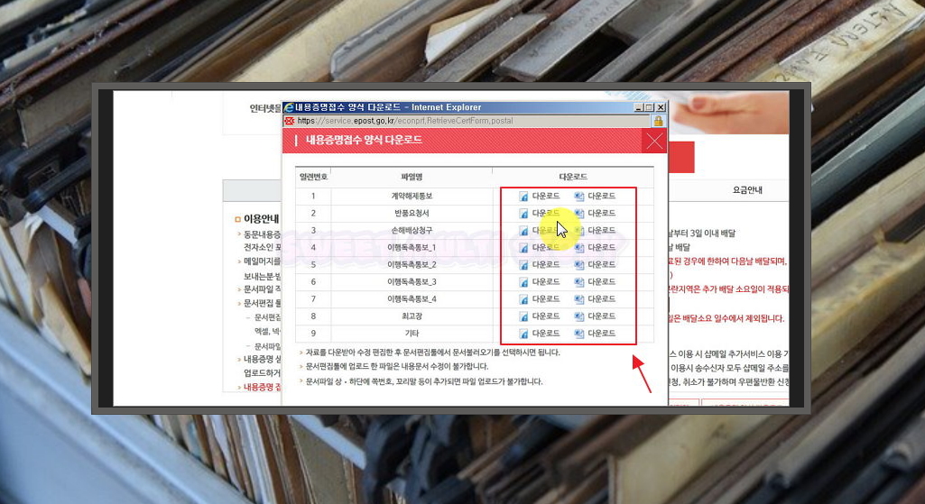 공공기관 사이트에서 제공하는 내용증명 무료서식 다운 받기.