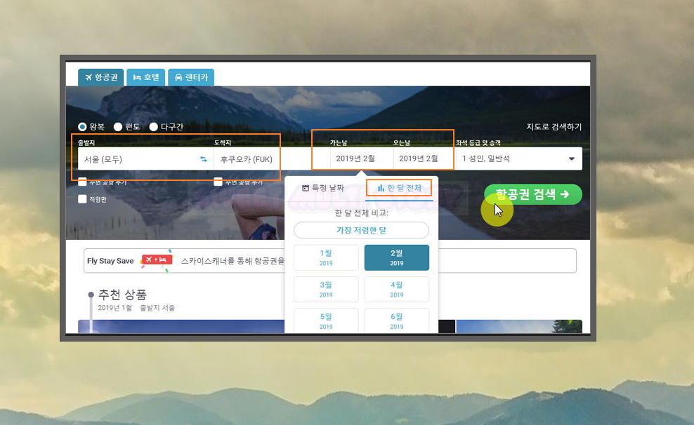 출발지와 도착지는 기본이고, 좌성 등급 및 승객, 가는날과 오는날을 지정해 주세요. 날짜의 경우에는 한 달 단위로 지정하는 것이 좋아요. 그래야 가장 싼 항공권을 찾을 수 있거든요.