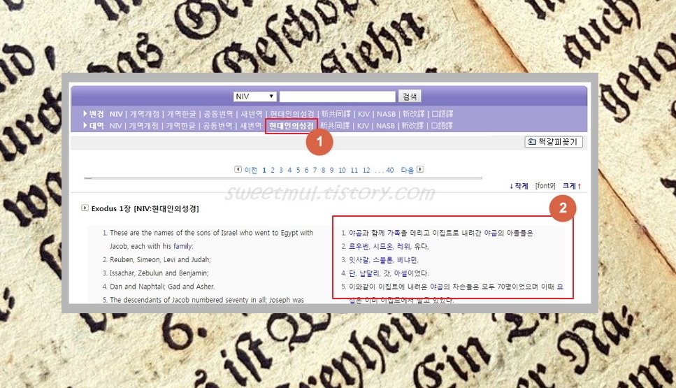 홀리넷 사이트에 접속하시면 창세기에서부터 요한계시록까지 구약과 신약 모두 읽을 수 있는데요. NIV 외에도 개역개정, 개역한글, 공동번역, 새 번역, 현대인 등 다양한 버전도 제공한답니다. 국제뉴스에서 보니 다양한 버전으로 읽는 것이 좋다고 하던데요. 나중에 실천해보고 싶네요.
