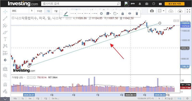 전문 투자자처럼 추세선을 그려볼 수 있어요.