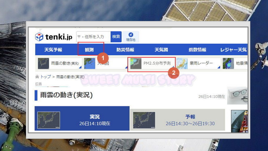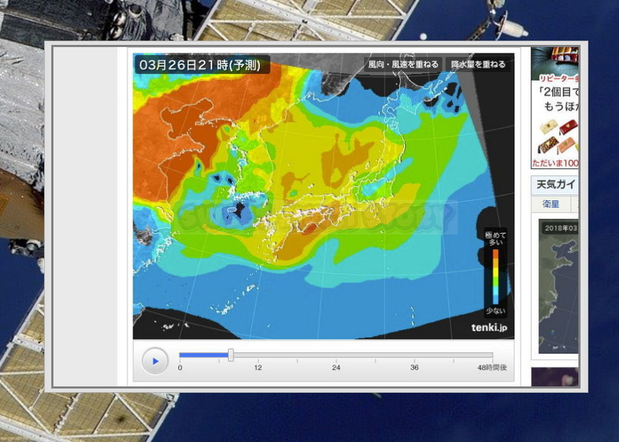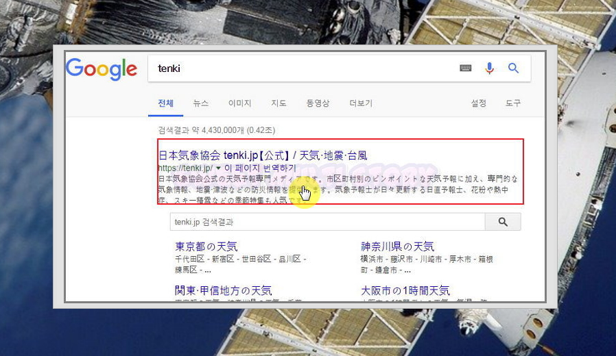 ▲ 또 한 가지 소개해 드릴 실시간 위성지도는 tenki 사이트에서 이용할 수 있습니다. 일본어로 되어 있지만, 이미지 영상만 보면 되기 때문에 별다른 어려움이 없습니다.