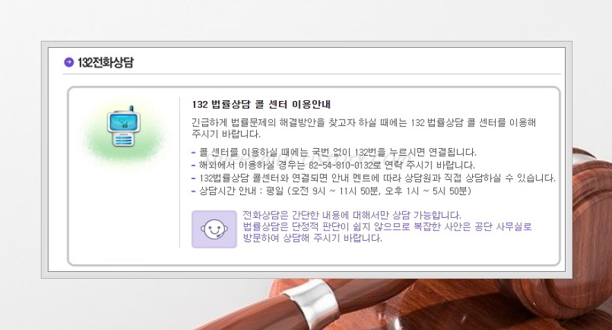 위와 같이 132를 누르시고 안내에 따라 번호를 누르시면 되는데요. 과거 다른 분들과 무료 법률상담 전화를 통해 얻은 사례와 법률상식에 대한 정보들을 이용하실 수 있답니다. 혹시 자신의 문의 내용을 공개하고 싶지 않으세요? 신청을 할 때 말씀하시면 비공개도 가능합니다.