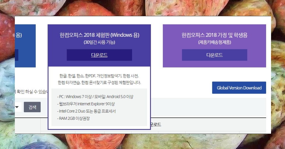 ▲ 한컴오피스 체험판에 대한 다운로드 버튼을 눌러주세요.