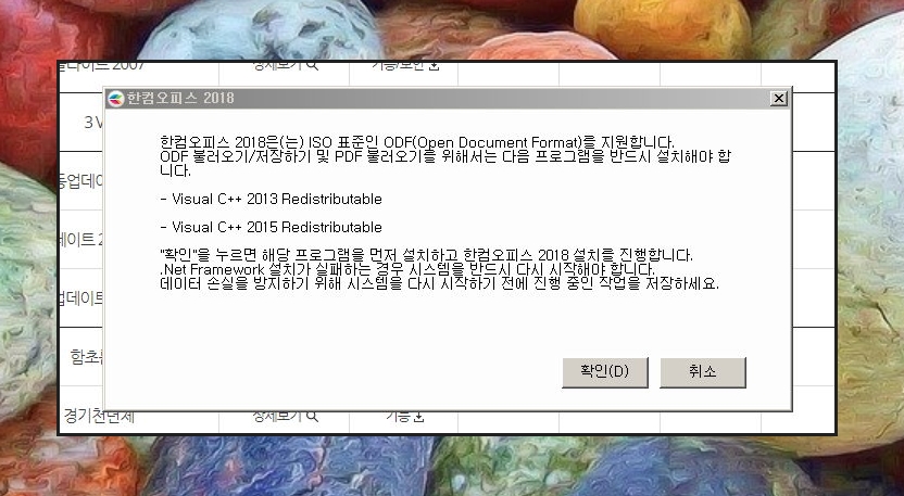 한컴오피스 설치를 진행하는 도중에 해당 프로그램이 없으면 안내를 받으실 수 있습니다.