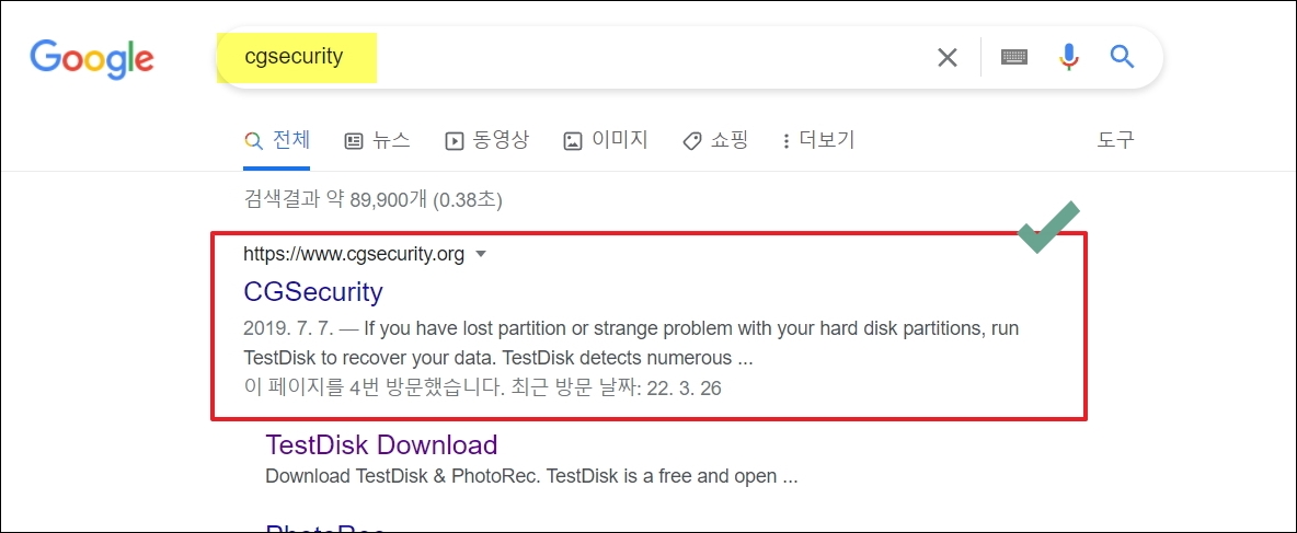 ▼앞서 언급한 프리웨어를 사용하려고 합니다. 해당 프로그램은 CGSecurity 사이트에서 다운로드 받을 수 있습니다. 구글에서 찾아보면 바로 다운로드 페이지로 이동할 수 있도록 [TestDisck Download] 메뉴가 있습니다. 해당 메뉴를 이용하면 홈페이지에서 다운로드 페이지 메뉴를 클릭하는 과정을 생략할 수 있습니다.