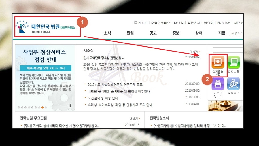 (1) 대법원의 '대국민 서비스' 클릭 및 접속