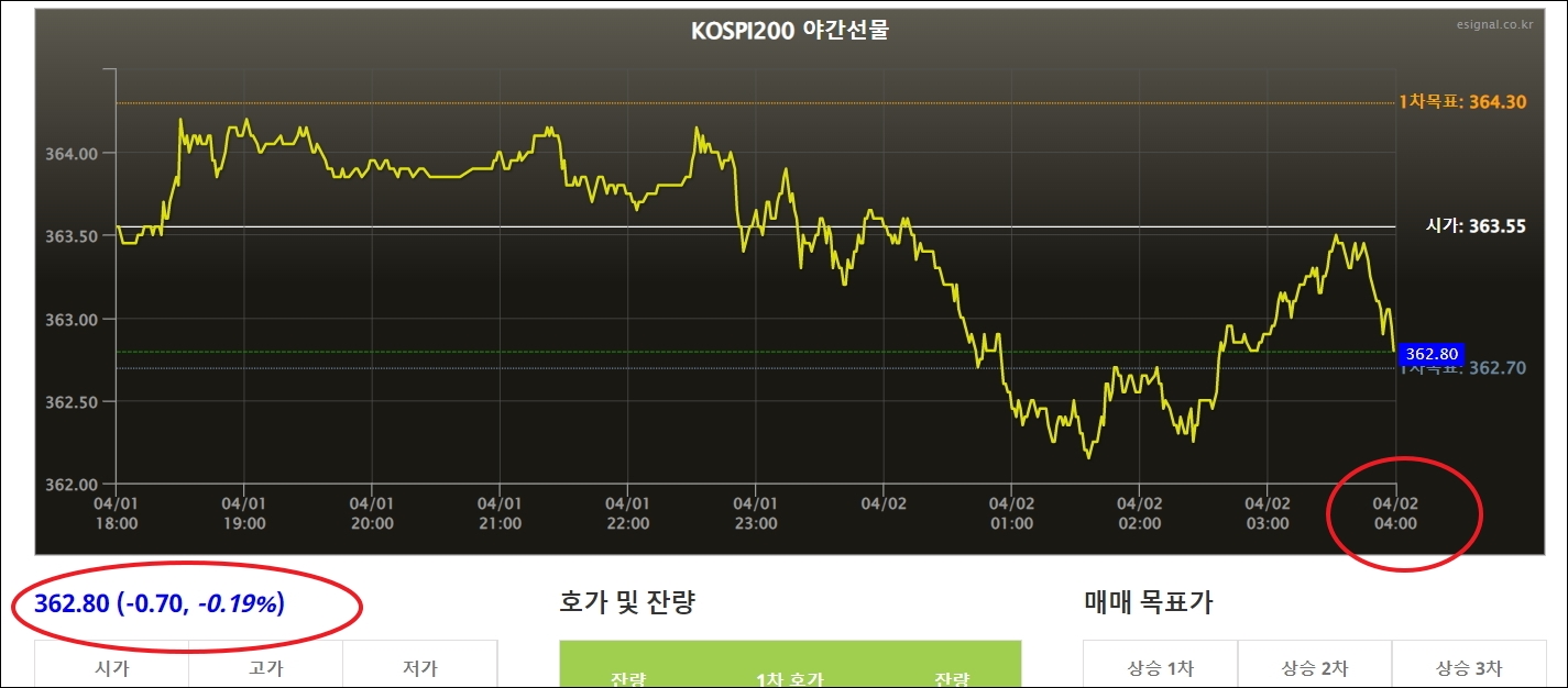 ▼첫 번째로 사용할 도구는 사상최강 사이트에서 확인이 가능한 야간선물 지표입니다. 이를 통해 국내 주식시장이 끝난 후에도 선물시장의 흐름을 확인할 수 있습니다. 야간선물의 마지막 흐름이 내일 증시에 큰 영향을 주기 때문에 어느 정도 유의미합니다.