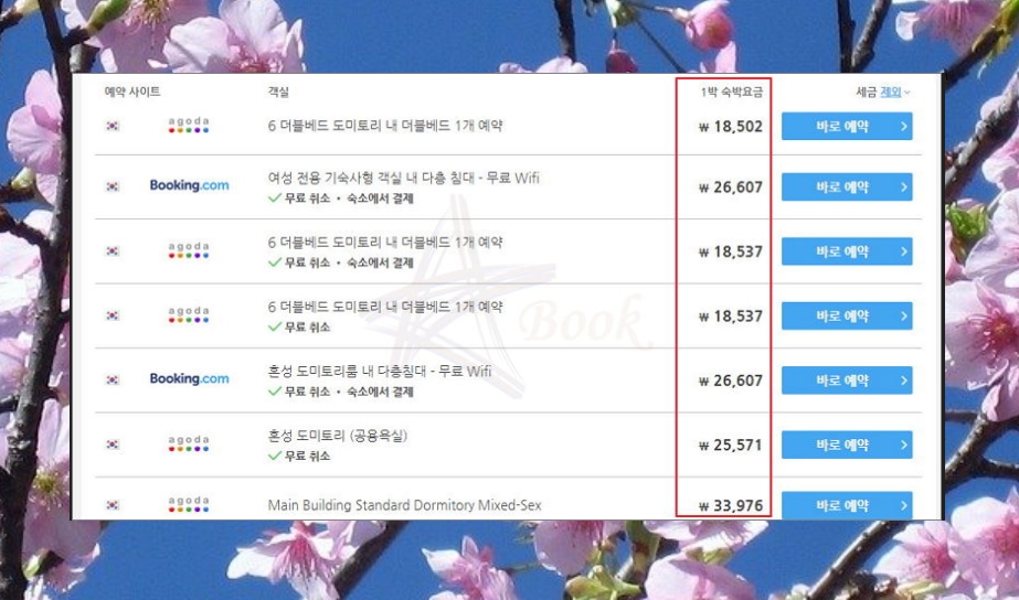 가장 저렴한게 1.8만원인데 도미토리라서 확실히 일반적인 곳보다는 저렴하네요. 그리고 여러 사이트들의 가격을 한 눈에 볼 수 있어서 정말 편한거 같아요.