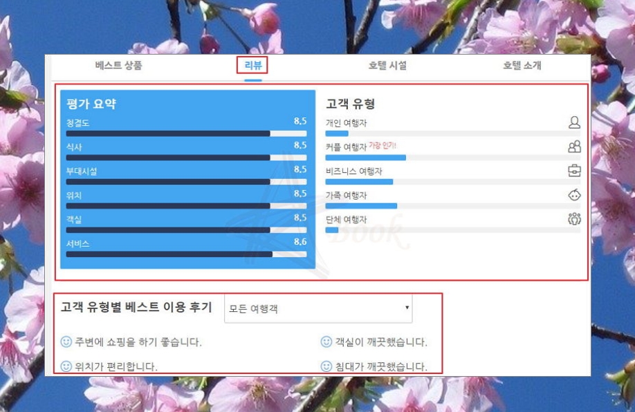 정리된 평가도 꼭 확인하시고 숙소에 머물다간 여행자분들의 검증된 후기를 보실 수 있는 고객 후기 코너를 통해서 꼭 사진,정보,평점을 통해서 원하는 일본호텔을 선택하시면 될 것 같아요.