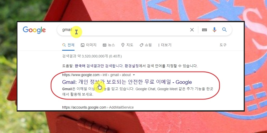 이번에는 구글의 Gmail을 이용한 발송하는 방법을 알려드리겠습니다. 검색을 통해 gmail 사이트에 접속해 주세요.