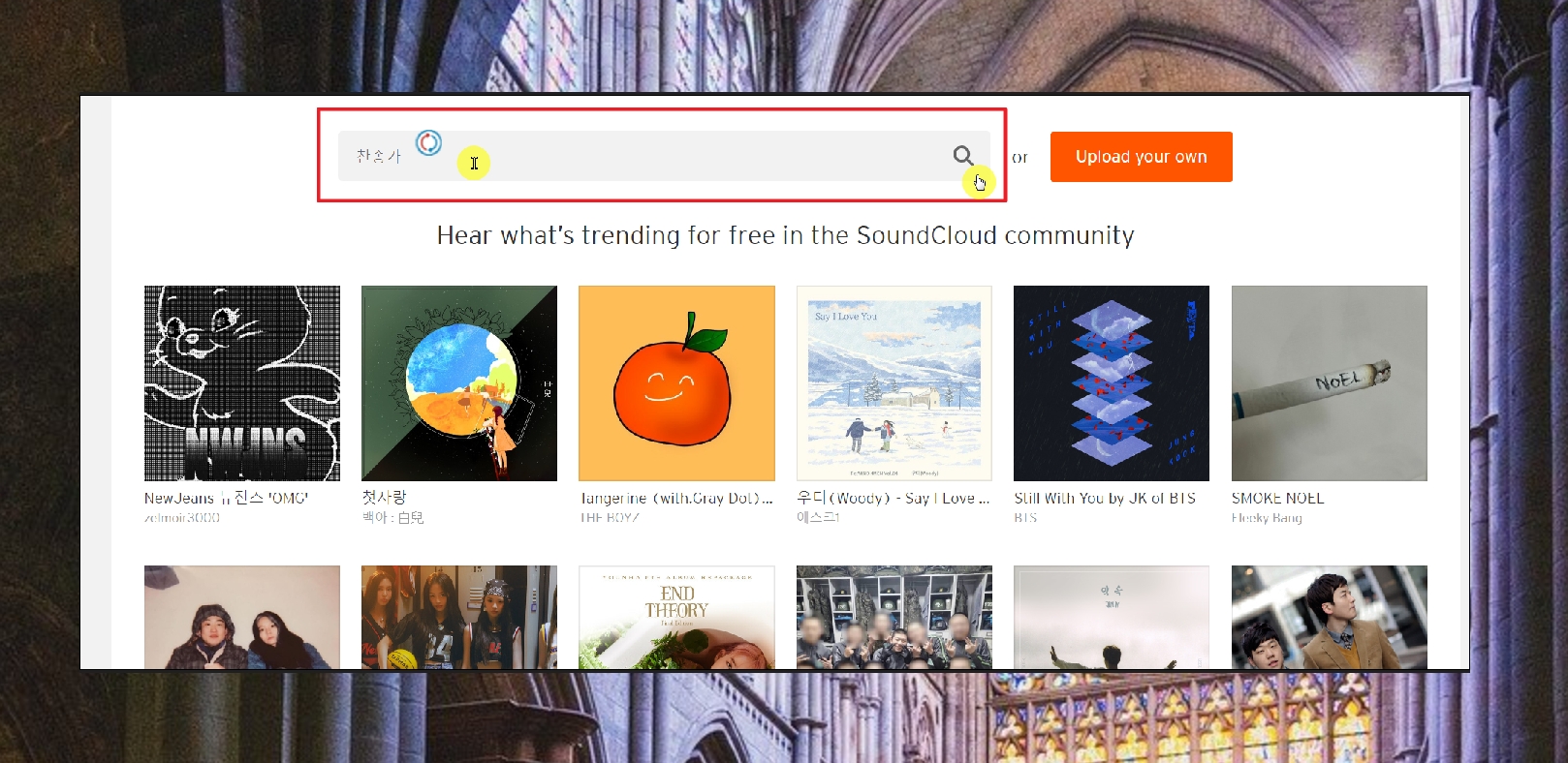 사운드클라우드 사이트에 접속했습니다.