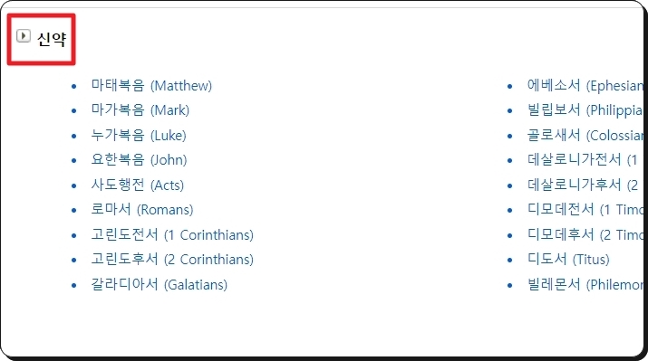 메뉴 선택 후에 가장 먼저 해야 할 것은 챕터를 선택하는 것인데요. 구약과 신약에 포함된 챕터를 모두 선택할 수 있습니다.