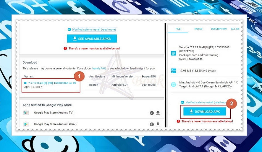 이동한 페이지에서 아래로 내려가면 다운로드 섹션이 있습니다. 여기서 파일 이름을 클릭한 후 'DOWNLOAD APK'를 누르면 play 스토어에 대한 apk를 받으실 수 있습니다. 다운이 완료되었다면 스마트폰으로 파일을 옮겨주세요.
