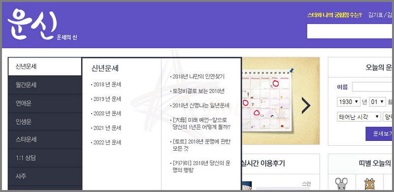 이 곳은 스포츠조선에서 운영하는 곳으로써, 무료로 자신의 운명이나 운세를 볼 수 있는 사이트입니다. 사주팔자를 통해 내 생의 전반적인 운명을 알아보는 것은 기본이고, 세부적으로 연애, 직장, 금전, 전생, 꿈해몽, 타로점 등을 보실 수 있습니다.