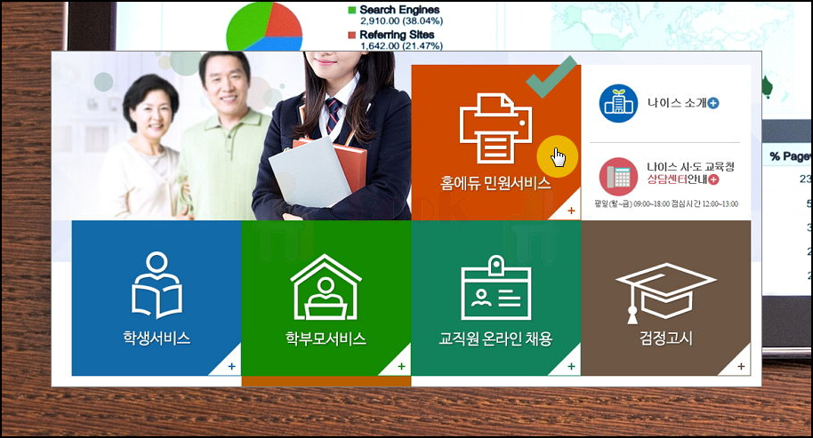 그럼 먼저 고등학교 생활기록부 발급을 위해서는 홈에듀 민원서비스를 클릭해주세요.