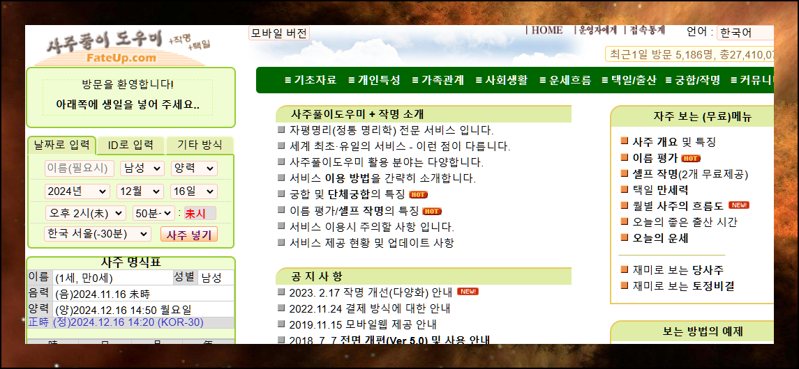 | 무료 사주팔자 보기 인터넷으로 보는 20가지 운세 서비스 (3) | 2024.10.01 |