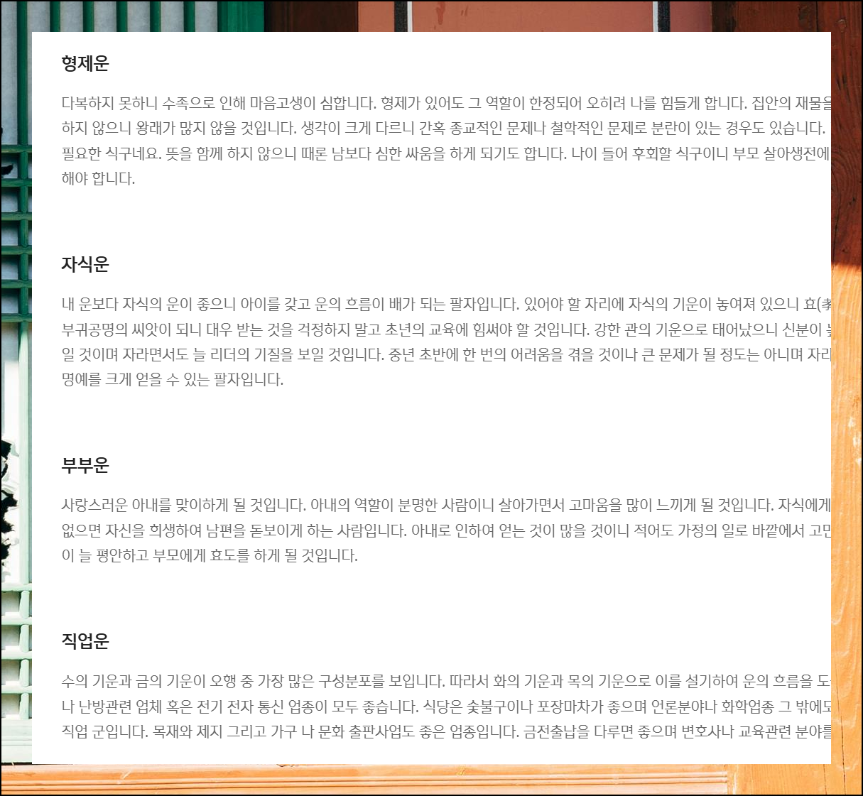 | 무료 사주풀이 도우미 알찬 사용법 (4) | 2024.12.17 |