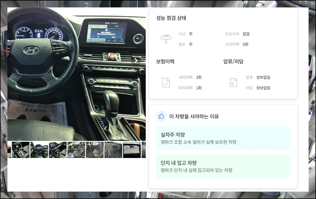 특히 차량의 상세 정보부터 성능점검 내역까지 투명하게 공개되어 있어 신뢰할 수 있죠. 이제 여러분도 집에서 편하게 가격 정보를 확인해보세요.