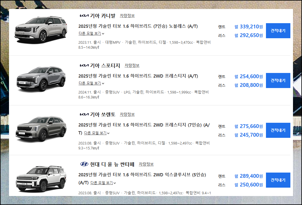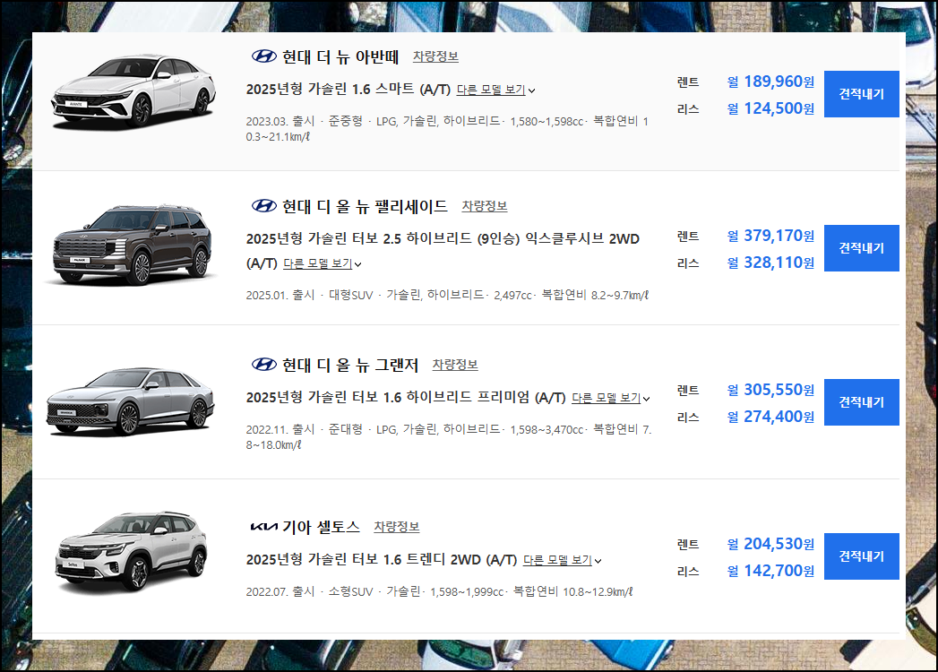 | 자동차 리스 가격표 정확히 살펴보기 (1) | 2025.04.25 |