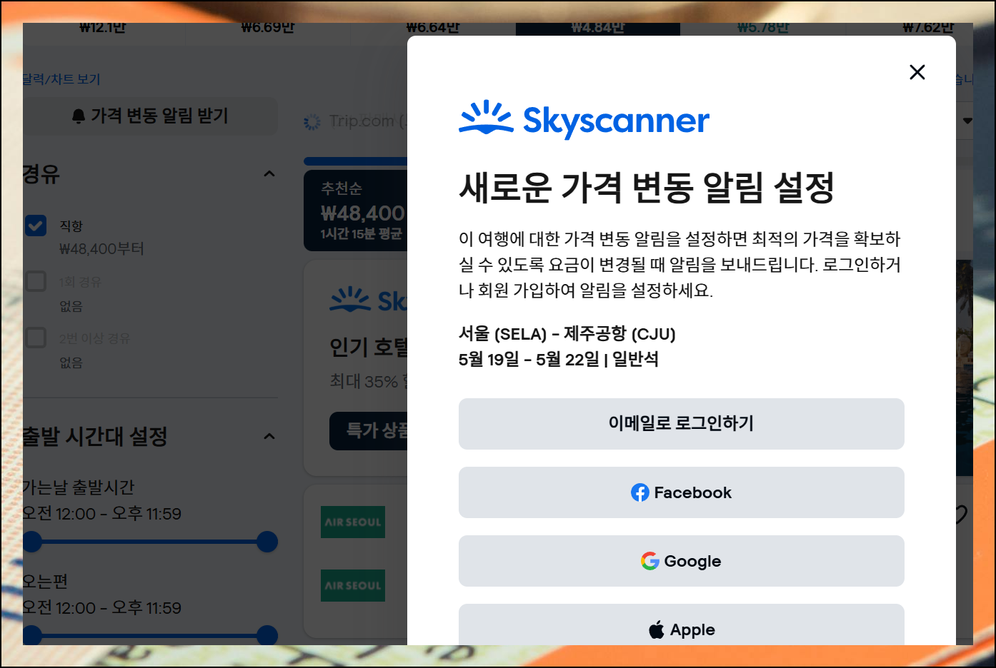 여행을 계획하는 많은 분들이 예상보다 높은 항공권 가격 때문에 여행 계획을 포기하시곤 합니다. 하지만 스카이스캐너와 같은 항공권 비교 사이트를 활용하면 제주도 왕복 항공권 가격을 최대 50%까지 절약할 수 있어요.