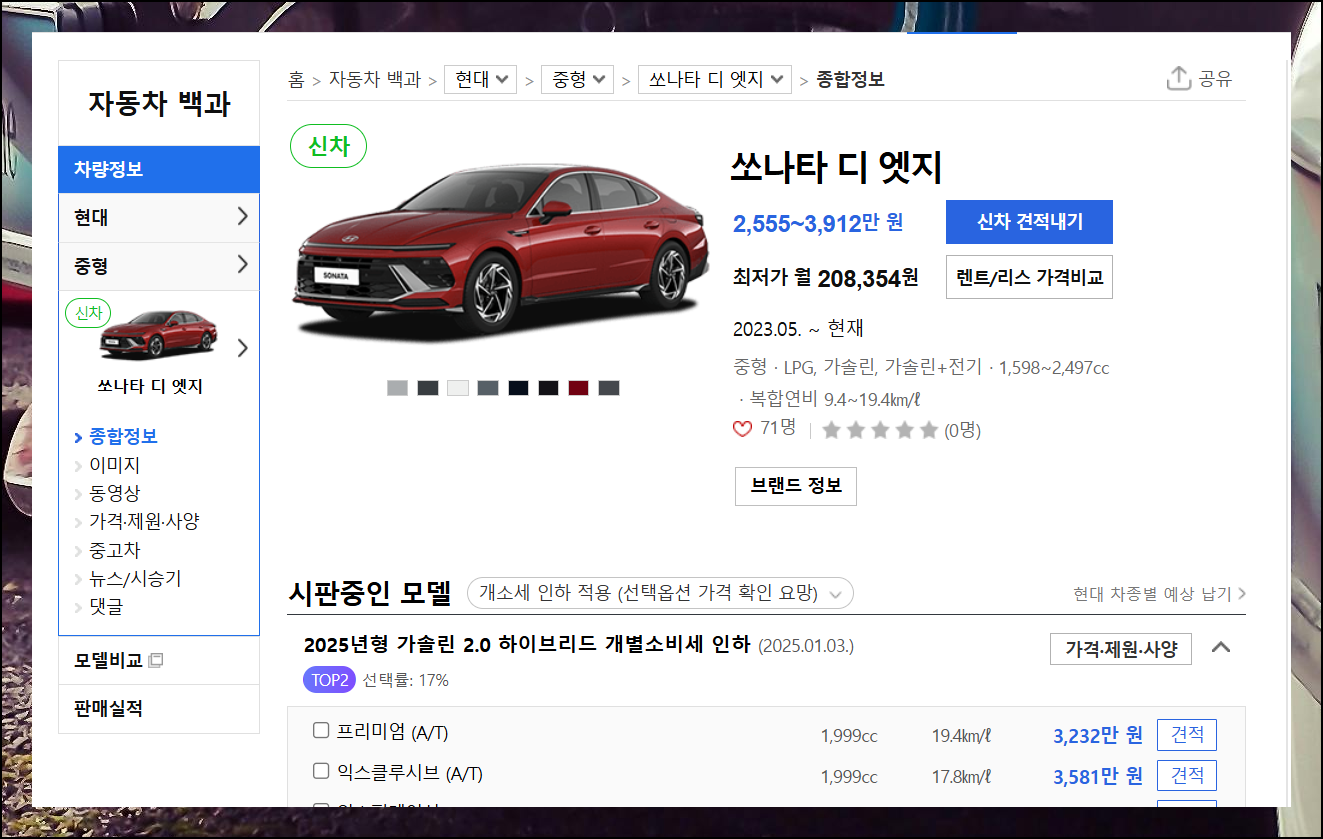 | 현대자동차 신차가격표 2025년 최신보기 (0) | 2025.02.03 |