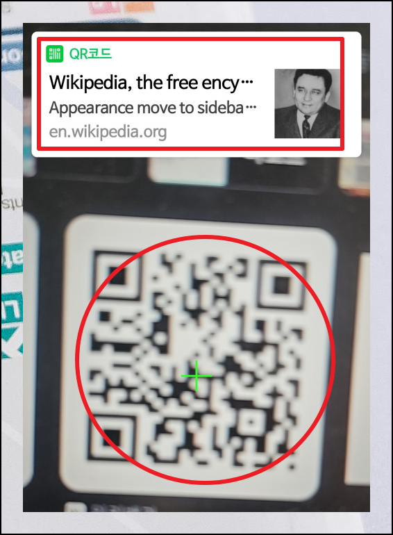 스마트렌즈 기능이 켜지면 QR코드를 카메라로 비춰보세요. 그럼 화면 중앙에 대상이 나타나도록 합니다. 그럼 카메라가 자동으로 대상을 감지하여 저장된 정보를 즉시 표시해줘요.