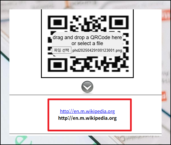 "파일 선택" 버튼으로 저장된 QR코드 이미지를 올리기만 하면 됩니다.