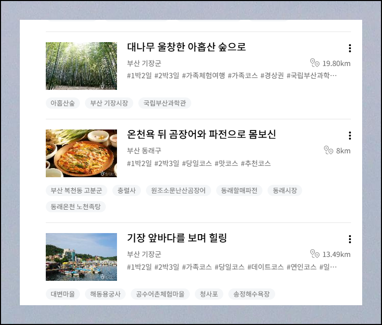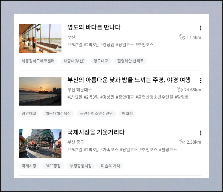 각 일정마다 총 거리가 표시되어 있어 여러분의 상황에 맞게 선택할 수 있습니다.