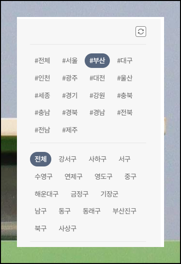 부산뿐 아니라 서울, 인천, 대전, 대구, 광주, 울산, 세종, 경기 등 전국 방방곡곡의 볼거리도 한 사이트에서 확인할 수 있어요.