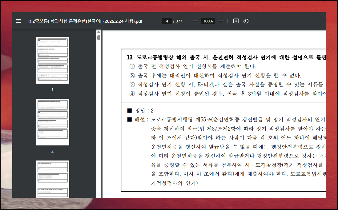 small pdf나 acrobat reader DC도 좋은 선택지가 될 수 있어요. 어떤 프로그램을 이용하든 편리하게 운전면허 학과시험 문제를 공부할 수 있습니다.