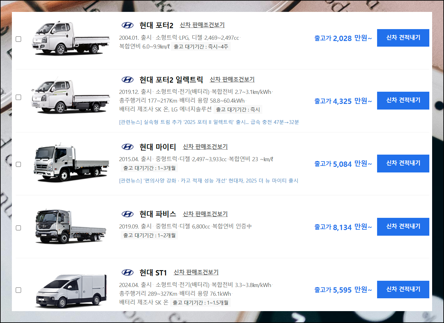 자신에게 딱 필요한 1톤 트럭을 선택하는 일은 생각보다 복잡하고 어려울 수 있어요. 다양한 옵션과 세부 모델 등의 선택지를 명확하게 해줄 현대 1톤 트럭 가격표를 이용해 보세요. 효율적인 선택이 가능해집니다.