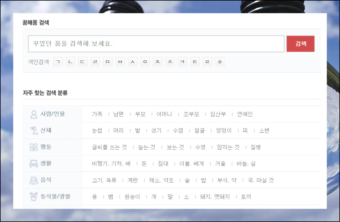 꿈해몽 무료풀이 결과를 확인하려면 어떤 꿈을 꾸었는지 선택하는 과정이 필요해요. 직접 꿈을 검색하거나 자주 찾는 분류 항목을 선택하면 됩니다.