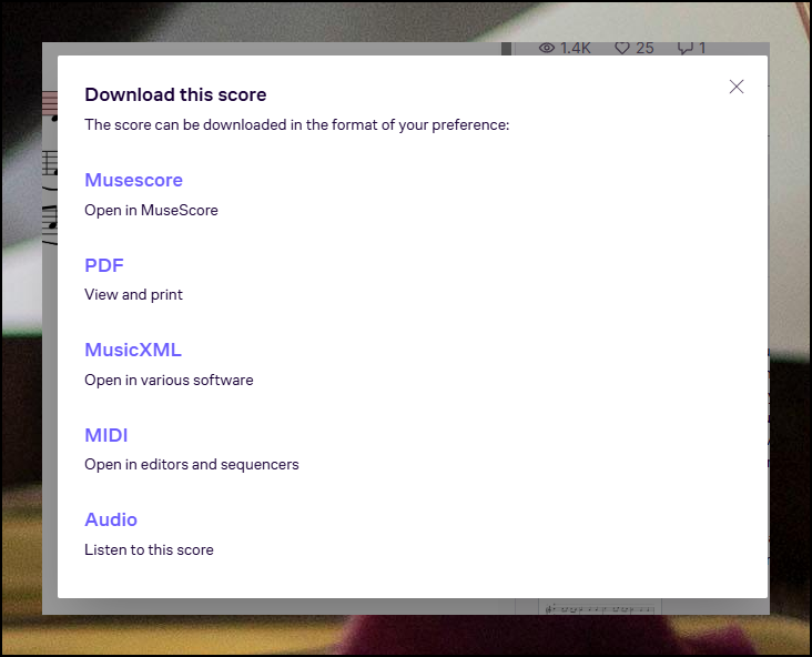 음악 파일이나 전문 프로그램용 파일로도 다운로드할 수 있어요. 뮤즈스코어 사이트에서 제공하는 무료 프로그램을 사용하면 편집이나 새로운 제작도 가능합니다.