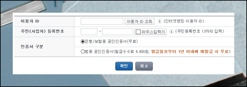 이제 인증에 필요한 정보들을 차례로 입력할 차례예요. 처음에는 초기비밀번호를 넣어주세요. 그다음 본인 계좌번호와 해당 계좌의 비밀번호를 입력합니다. 마지막으로 공인인증서 발급 전용 비밀번호까지 넣어주시면 돼요.