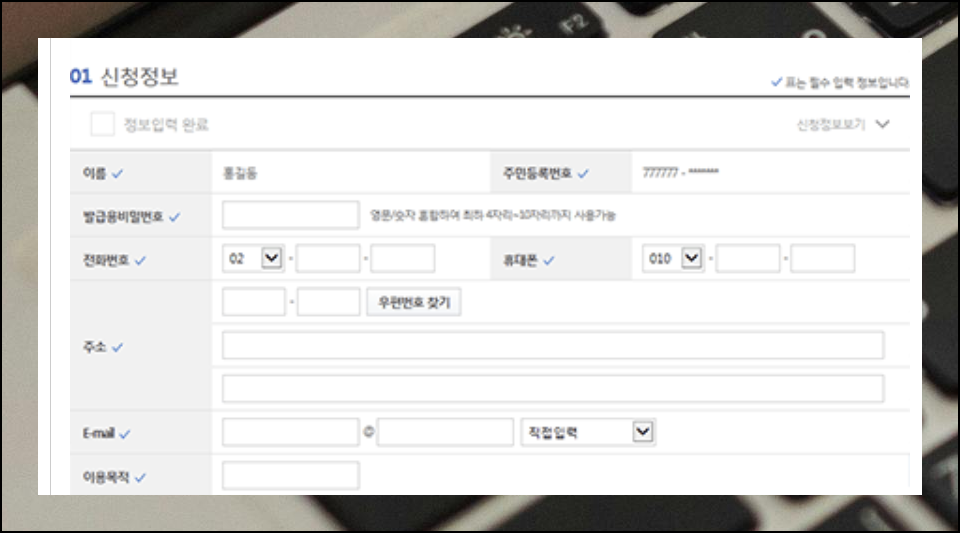 공인인증서 재발급을 위해서는 다양한 개인정보가 필요합니다. 전용 비밀번호부터 업종, 대표자명, 사업장 주소, 담당자명, 연락처, 휴대폰 번호, 이메일 주소, 사용 목적까지 정확하게 기재해야 해요.