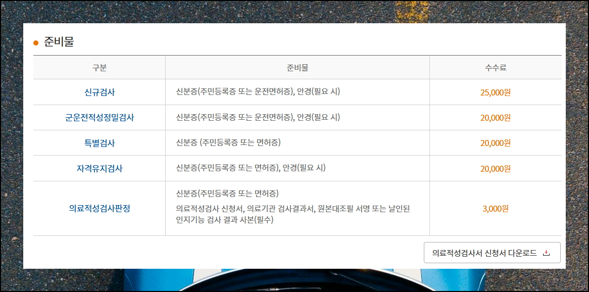 평가 유형에 따라 가져올 물건이 조금씩 달라질 수 있어요. 자격유지검사를 진행할 때에는 본인임을 확인할 수 있는 신분증과 검사비가 기본이에요. 평소 안경 착용하는 운전자라면 안경까지 반드시 준비하세요. 미리 체크리스트를 만들어 준비하면 당일 진행이 훨씬 수월해져요.